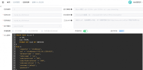 主要功能:包含任务配置、启/停任务、告警、日志等功能,支持sql语法提示,格式化、sql语句校验。