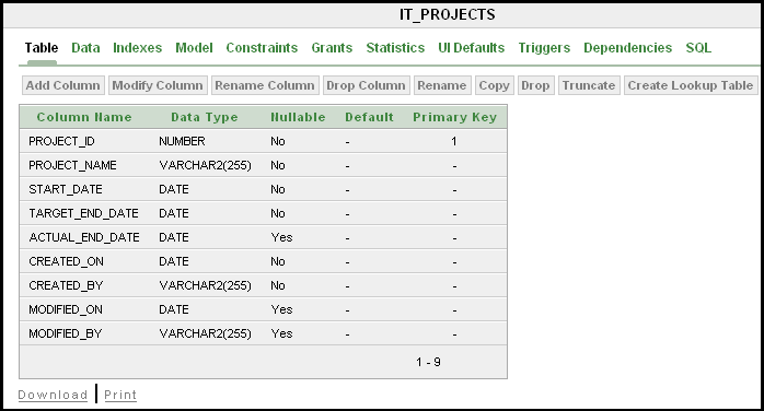 Create an Object in Object Browser. Use Object Browser to create tables, views, indexes, sequences, types, packages, procedures, functions, triggers database links, materialized views, and synonyms. A wizard walks you through the choices necessary to create the selected database object. To create an object in Object Browser, navigate to SQL Workshop, then Object Browser, and click Create. See "Managing Database Objects with Object Browser" in Oracle Database Application Express User's Guide.