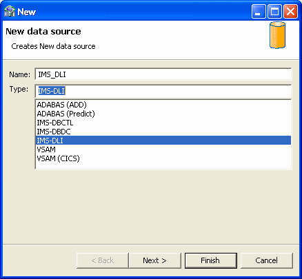 The IMS-DLI data source connection is set using the Design Perspective Configuration view in Oracle Studio for IMS, VSAM, and Adabas Gateways. Perform the following steps to define the IMS-DLI data source connection.