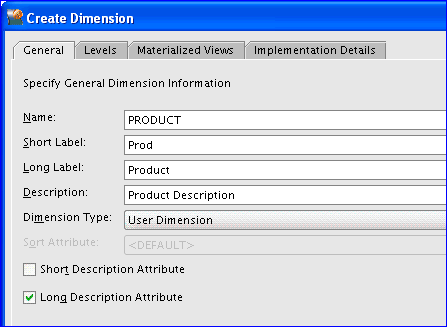 Alternatively, you can create levels in the Create Dimension dialog box Levels tab.Figure 3-3 shows the creation of the Class level for the Product dimension.