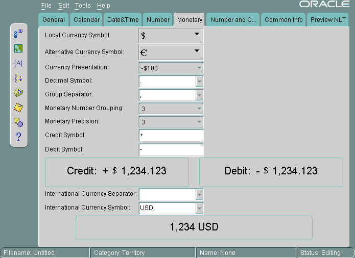 The Oracle Locale Builder offers an easy and efficient way to customize locale data. It provides a graphical user interface through which you can easily view, modify, and define locale-specific data. It extracts data from the text and binary definition files and presents them in a readable format so that you can process the information without worrying about the formats used in these files.