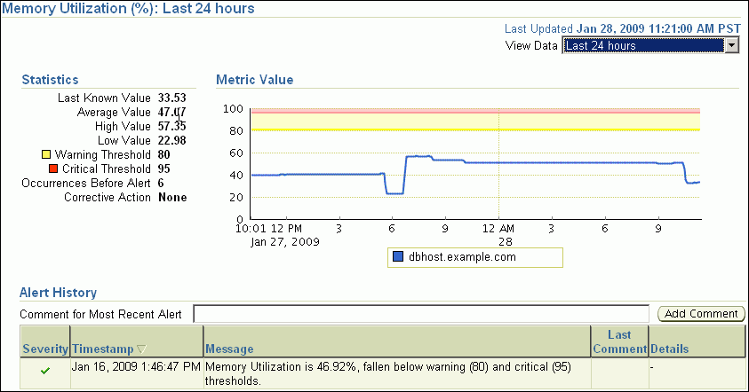 In this example, memory utilization never exceeded 60%, so a warning was not generated.