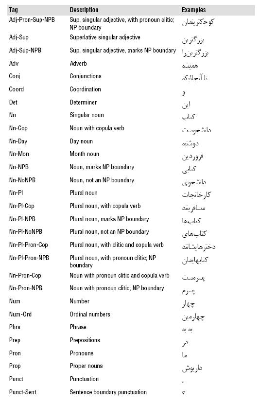 Figure I-18 Tagging in Farsi (Abbr to Adj-NPB)