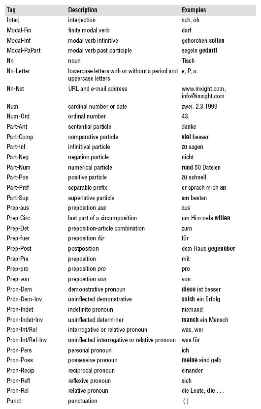 Figure I-28 Tagging in German (Punct-Comma to V-PaPart)