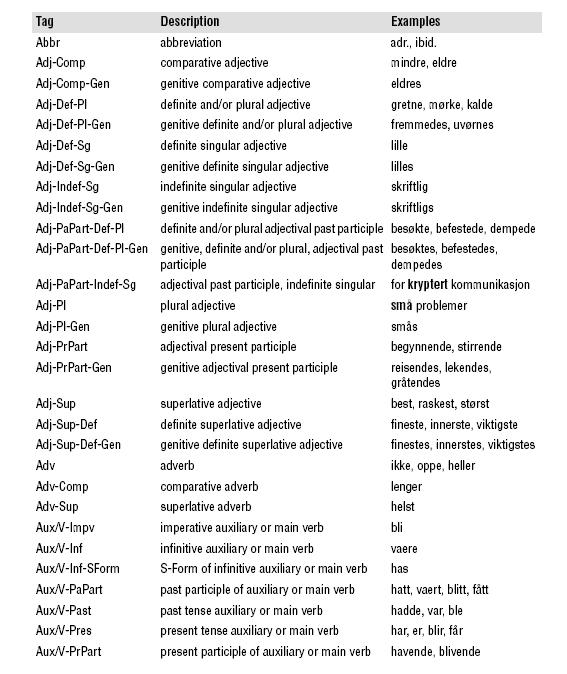 Figure I-35 Tagging in Bokmal (Abbr to AuxN-PrPart)