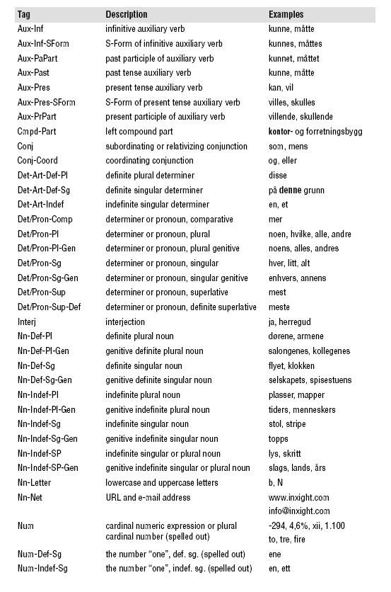 Figure I-38 Tagging in Nynorsk (Abbr to Aux-Pres