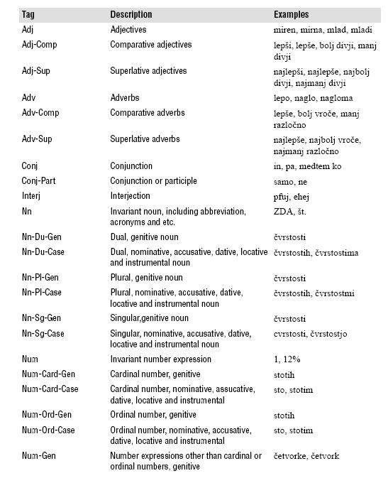 Figure I-49 Tagging in Slovenian (Num-Case to Punct-Comma)